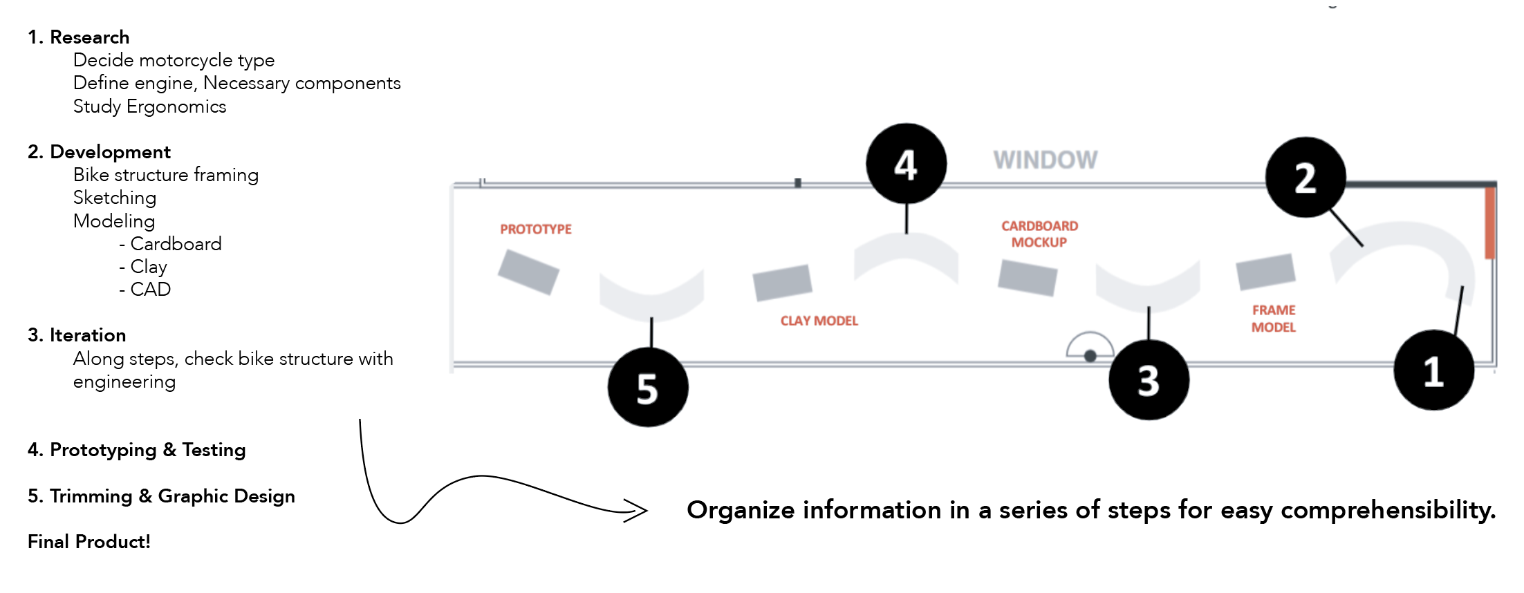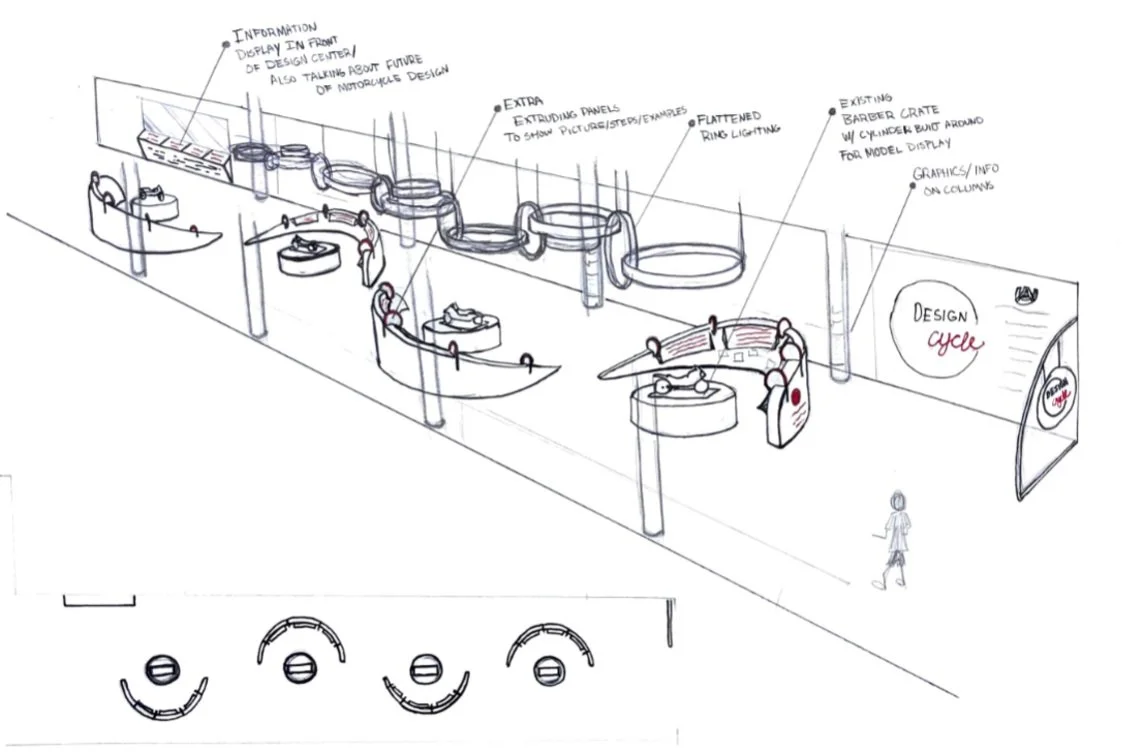 We were to design an exhibit for Barber Vintage Motorsports Museum showcasing the design process of motorcycles. We were told this third-floor hallway pictured above is where it would be held.