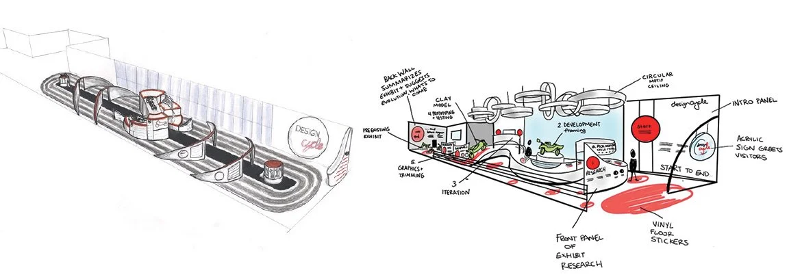 Brian called a last-minute audible by merging Design Cycle’s name with another team’s exhibit concept/identity.