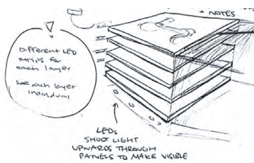 Build a strategy, taking inspiration from other exhibits and forms, then make a mood board.