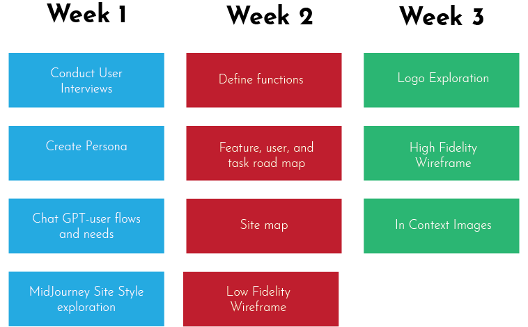 Given the time constraints, there was no time for a low-fidelity wireframe mockup as stated in the timeline.